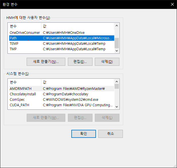 변수에서 Path를 찾은 뒤 편집을 눌러줍니다.