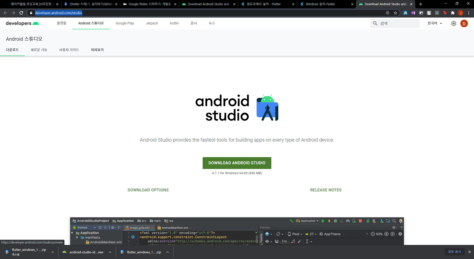 원하는 경로에 압축을 해제합니다. (ex : D:\flutter )