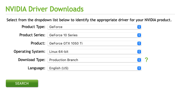 저의 경우에는 GTX 1050ti를 사용하기 때문에 다음과 같이 검색해주었습니다. (이건 본인 컴퓨터 글카에 따라 확인해주세요!)